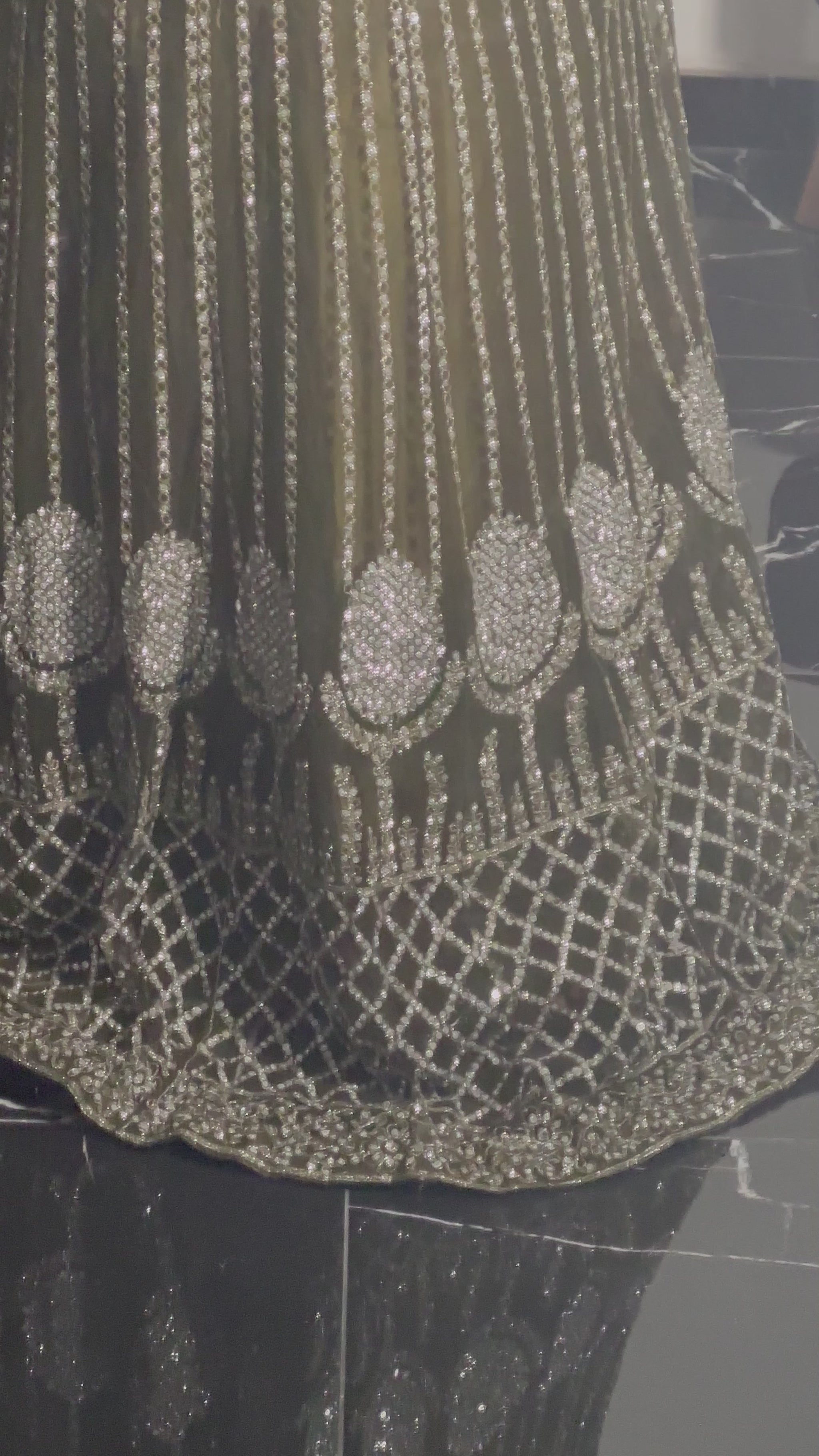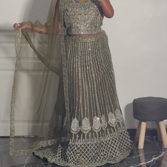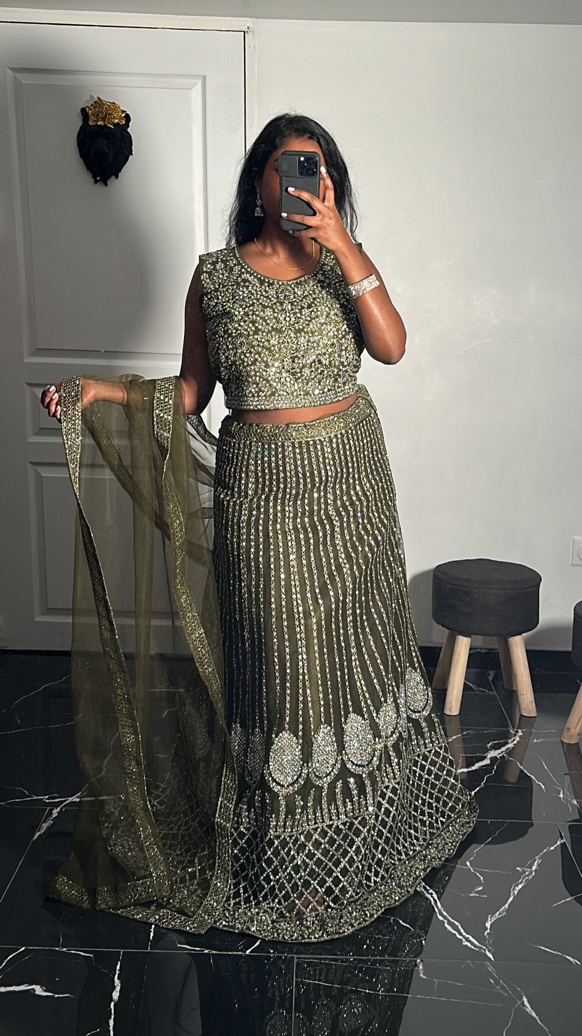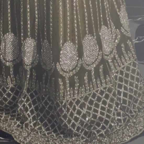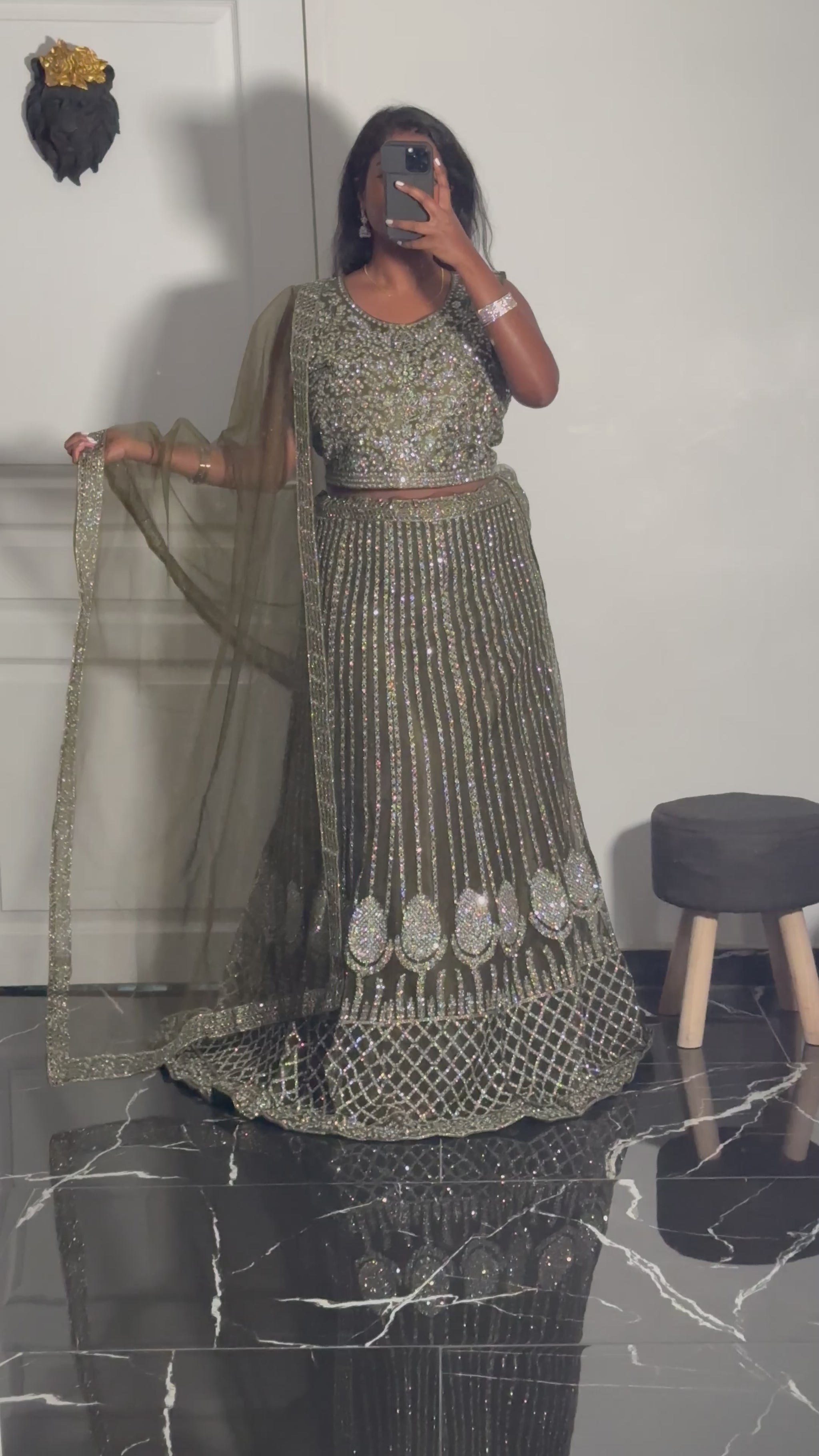 Lumineux et élégant, ce Lehenga est agrémenté de strass et de perles qui captivent l'attention.