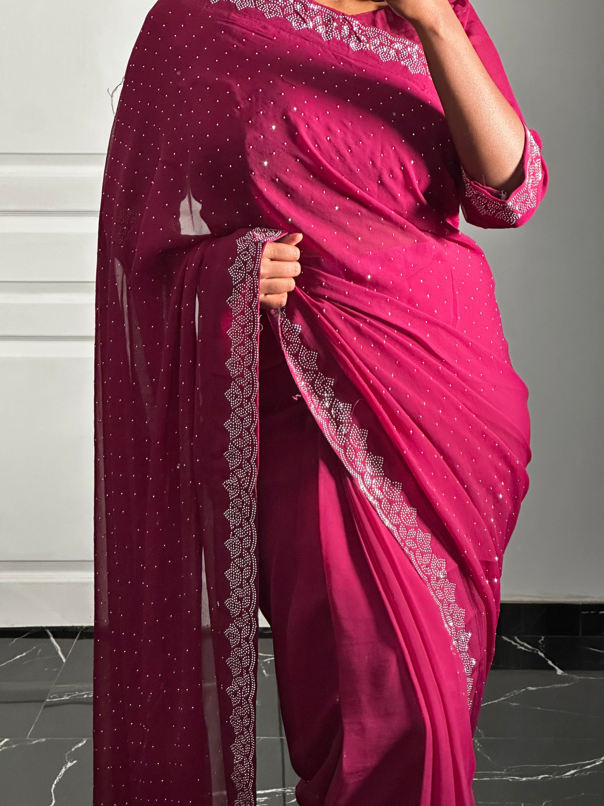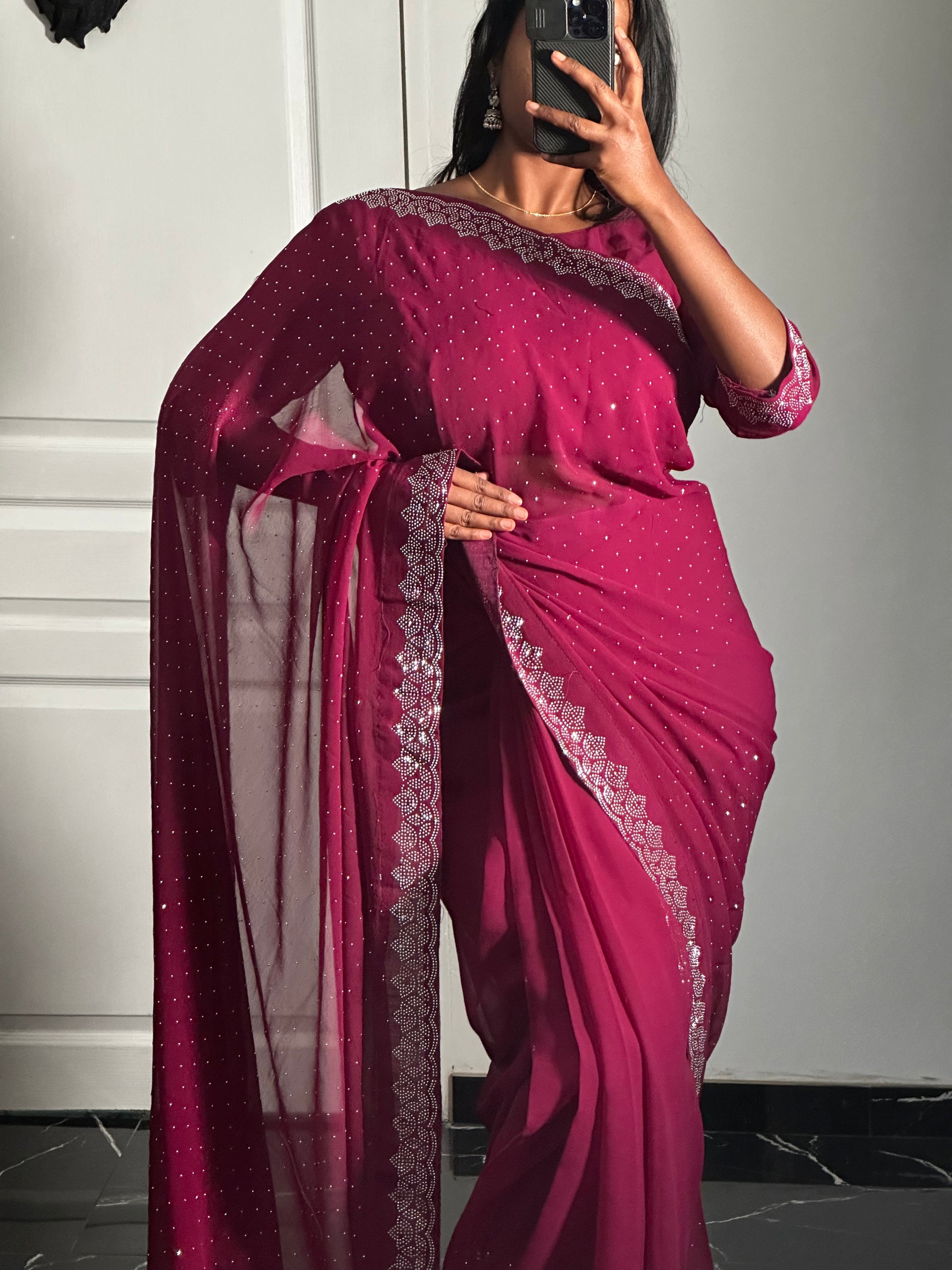 Explorez notre saree en georgette "1 Minute saree". Ce magnifique saree apporte une élégance intemporelle à votre garde-robe.